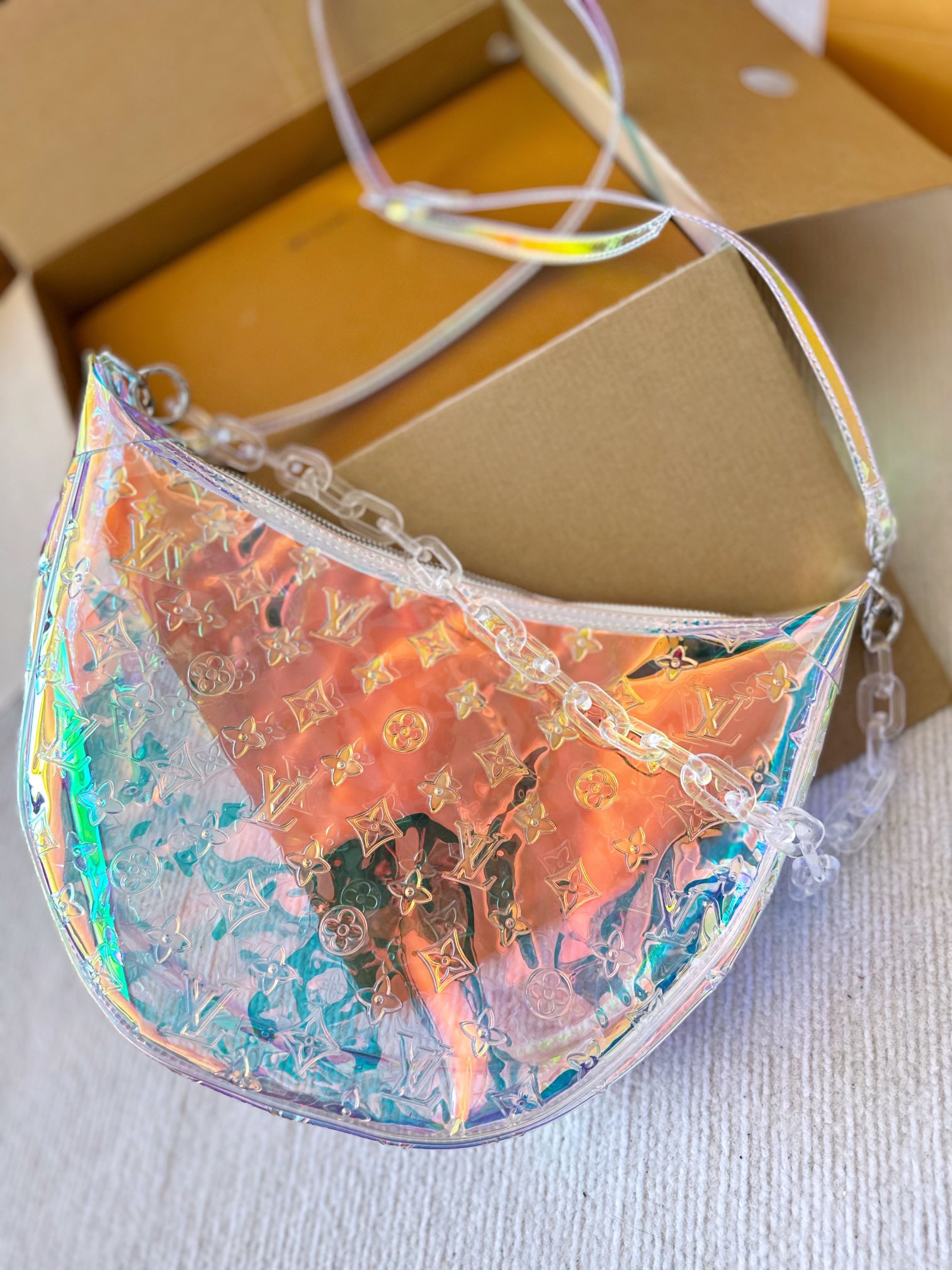 L&V ゼリー感 メッセンジャーバッグ カラフルな反射素材