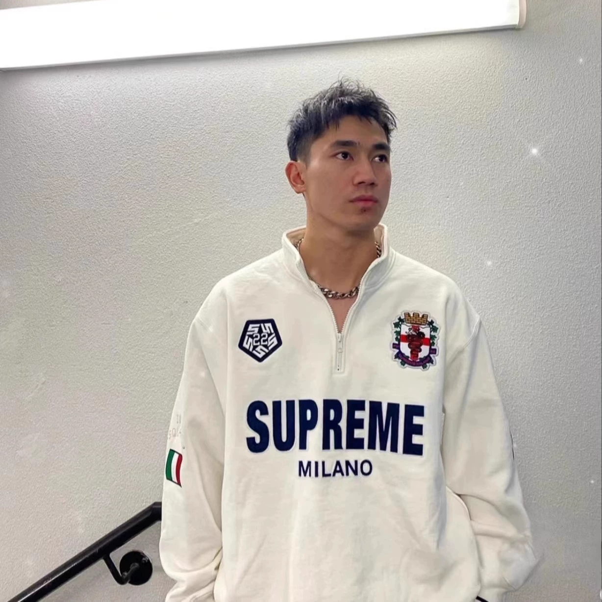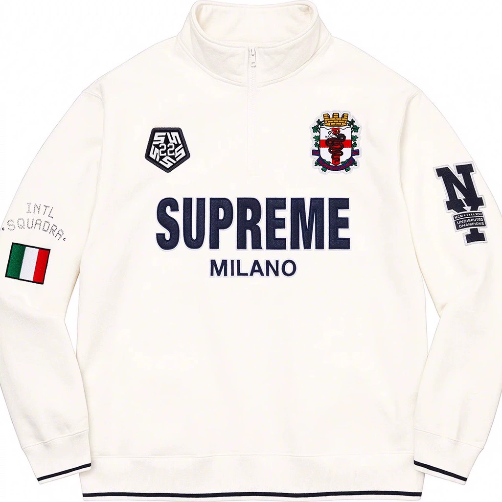 Supreme 22FW Milano Half Zipプルオーバー レターパッチ ハーフジッパー ミラノ スウェットシャツ